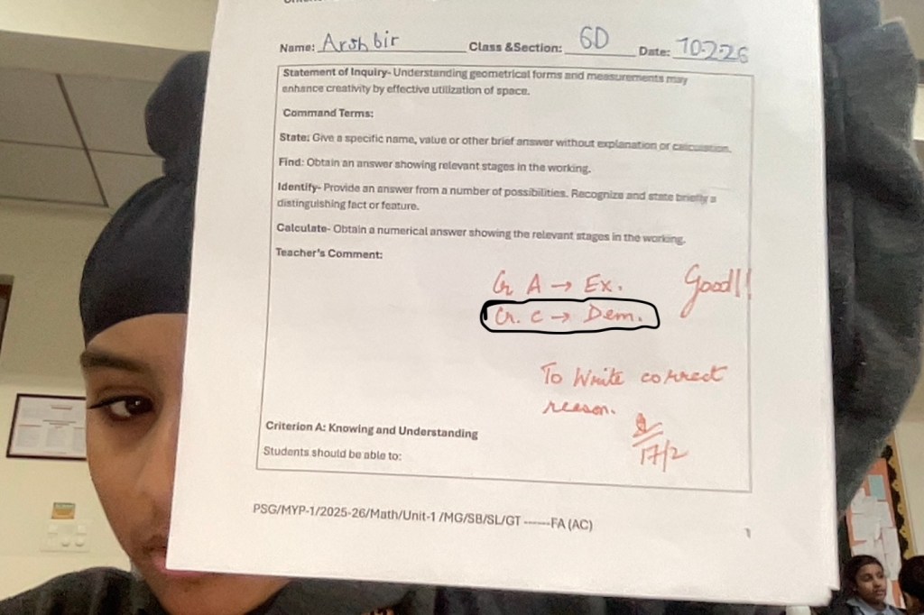 In Math, the topic I understand most is Algebra in Unit 2 as I can write algebraic expressions fluently and can solve equations. What I am good at but still need to improve on is Criterion C as I am getting Demonstrating meaning that I am doing good but there is still room for improvement. Even I have a struggle in Math, and that is being patient while waiting for my turn.